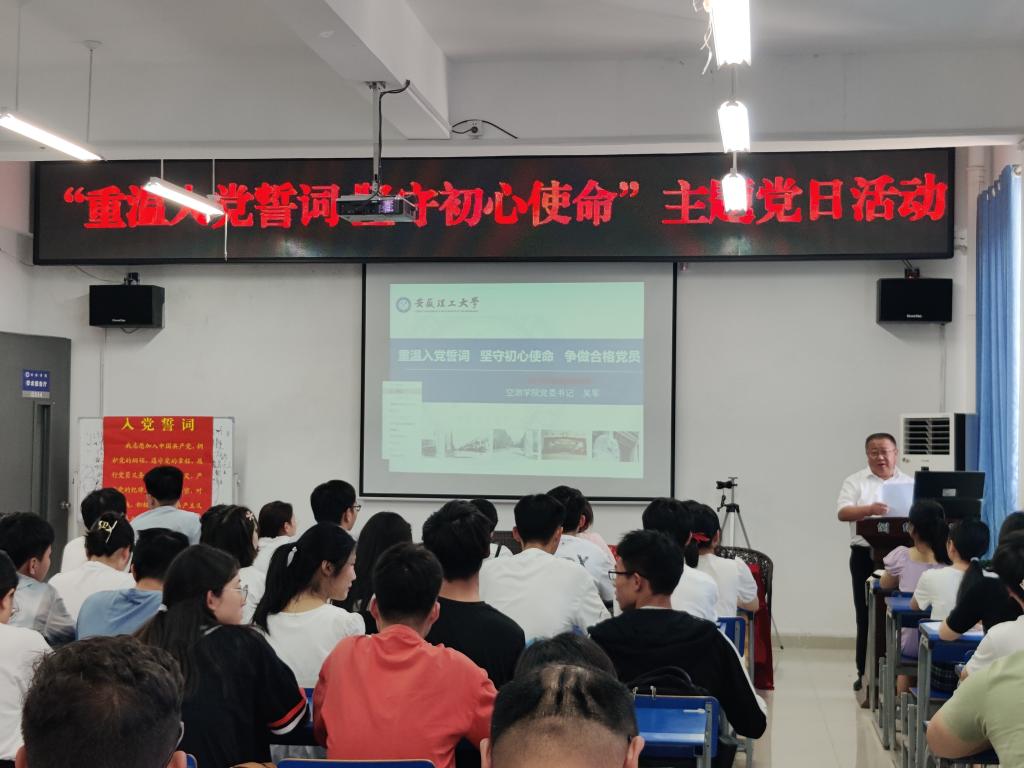 6月11日中午,空间信息与测绘工程学院在学院楼北512会议室举行“重温入党誓词,坚守初心使命”主题党日活动。学院全体教工党员和毕业班党员参加活动。
