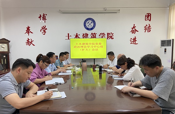 6月18日上午,土木建筑学院党委在求是楼南231会议室召开理论学习中心组(扩大)会议,学院党委书记徐冬生主持会议,院党委中心组成员、党支部书记、系主任、学生思想政治辅导员、科级干部参加会议。