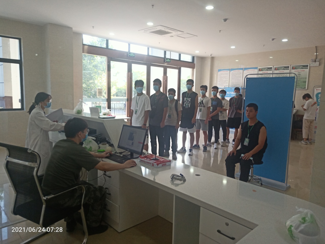 6月24日至25日,按照田家庵区征兵工作部署,我校68名大学生在校武装部工作人员的带领下,到淮南市第七人民医院参加了征兵体检。