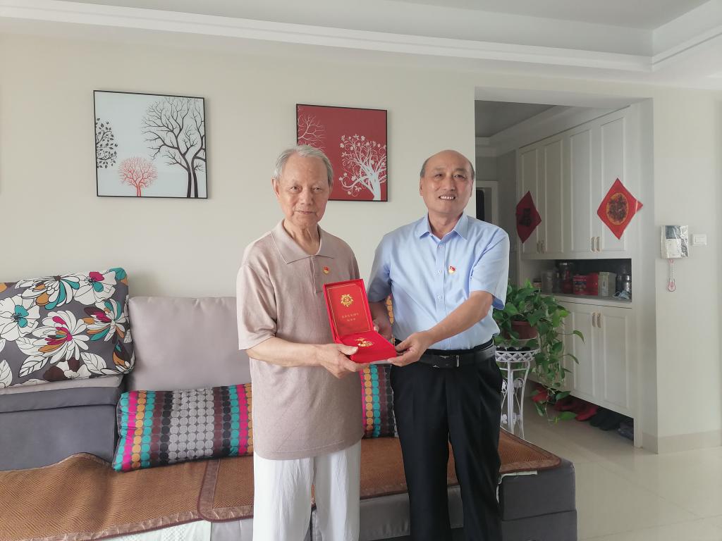 慰问过程中,院党委书记盛鹏飞为陈明辉同志送去“光荣在党50年”纪念章,亲切地询问老同志的身体状况、生活和家庭情况,送上慰问金,感谢老党员、老教师们为学校和学院建设做出的贡献,让他们共享学校和学院发展的成果,感受党组织的关怀,安度晚年。