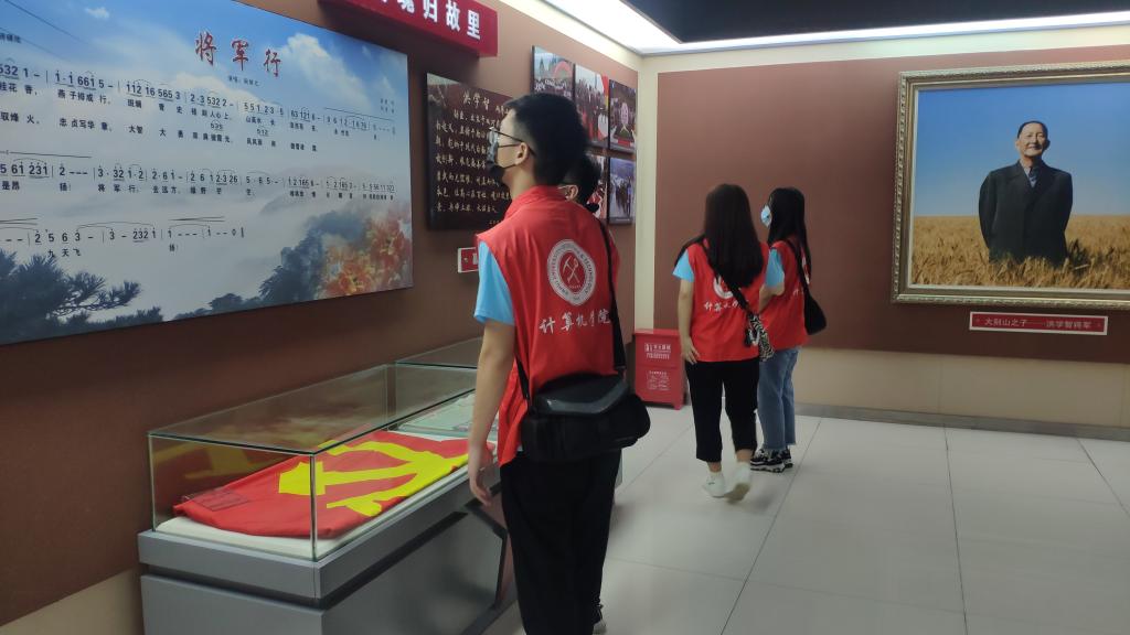 7月29日上午,志愿者们辗转来到汤家汇红色小镇,革命旧址内一张张珍贵的历史图片、一件件厚重的历史文物仿佛都在向志愿者们诉说着革命先烈的英勇事迹,带领大家走入那个血雨腥风的时代,体会革命先烈不怕困难、不怕牺牲、英勇不屈的伟大爱国情怀。“我志愿加入中国共产党,拥护党的纲领... ...”,面对鲜艳的党旗,师生们在党史教育基地庄严宣誓,每名志愿者都感受到了作为青年大学生自己身上的时代责任和历史使命。最后,志愿者们通过合唱《八月桂花遍地开》感受当年红军的革命精神,追忆红军战士。