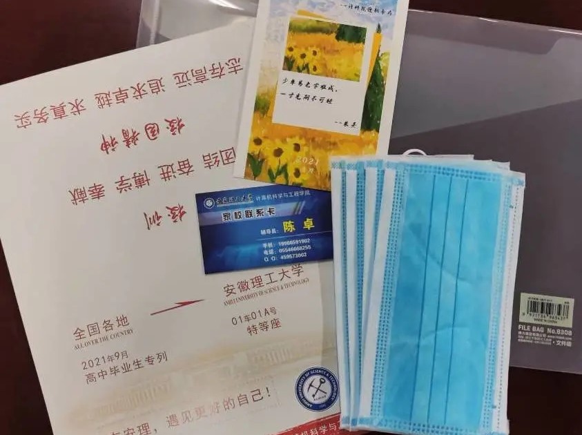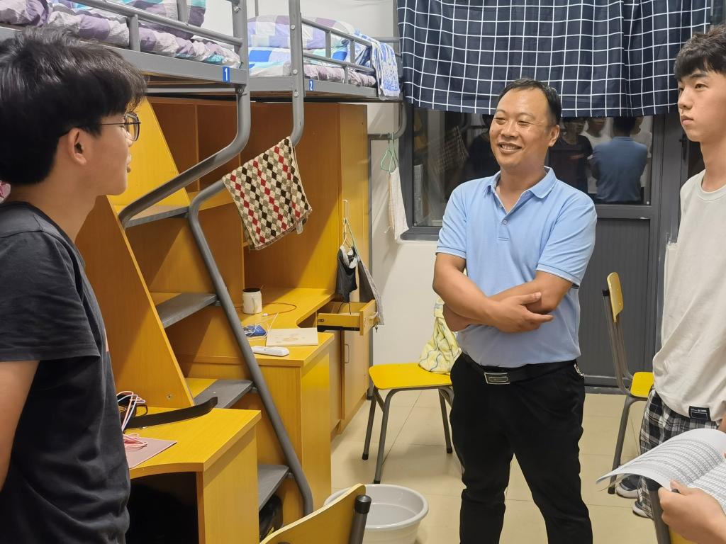 在新生报到入住的第一晚,学院党委副书记刘中廷和新生辅导员深入学生宿舍,了解学生情况,询问新生入学感想和适应情况等,针对防疫安全、宿舍用电安全、财产安全等关键问题进行了强调,并为新生送上了制作精美的《写给2021级本科新生的一封信》、家校联系卡、祝福卡等入学大礼包,帮助新生更快地适应校园生活。