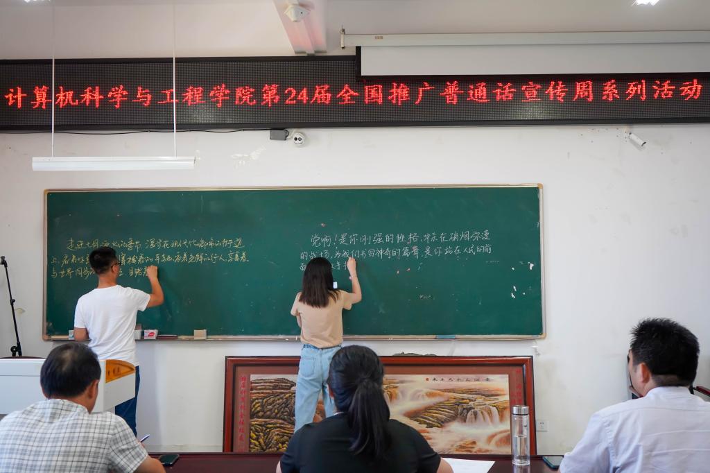 在第24届“全国推广普通话宣传周”(简称推普周)来临之际,为深入学习领会贯彻落实习近平总书记等中央领导同志关于做好推广普及国家通用语言文字工作的重要指示精神,计算机学院积极响应、高度重视,广泛、深入的开展了形式多样、内容丰富、特色鲜明的推广普及国家通用语言文字和传承弘扬中华优秀语言文化相关活动,营造了良好氛围。