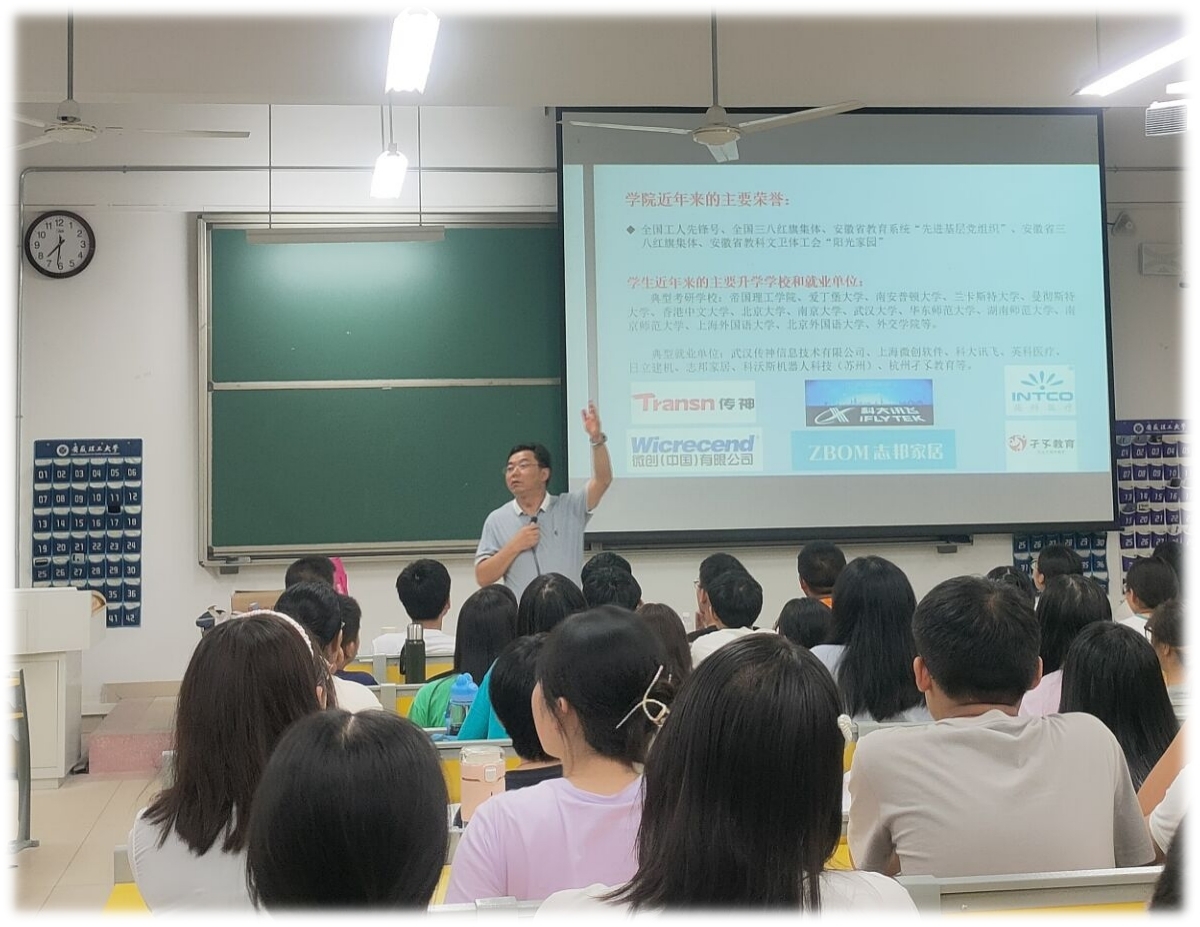 在入学教育系列讲座中,副院长李争、英语系主任应伟伟、日语系主任汪南雁、2011届英语专业校友于海涛、各年级辅导员分别采用集中授课的方式,围绕专业入门、情境导入、党员发展、榜样引领等四个教育模块向新生们系统介绍了学院发展历程、专业建设、专业培养方案、就业升学、职业规划、党员发展程序等情况。
