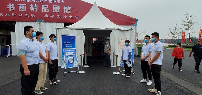 博览会期间,志愿者分为四个小组协助疫情防控检测工作。每天早上7点到下午6点,志愿者都在淮南市奥体中心提醒游客“扫安康码、测量体温、佩戴口罩”。从9月29日到10月8日,风雨无阻,他们面带笑容、严谨细致,以高效率、高质量、高水平的服务圆满完成此次工作任务,赢得了组委会、游客的高度认可,充分展现了我校大学生的精神面貌,也体现了“奉献、友爱、互助、进步”的志愿精神。