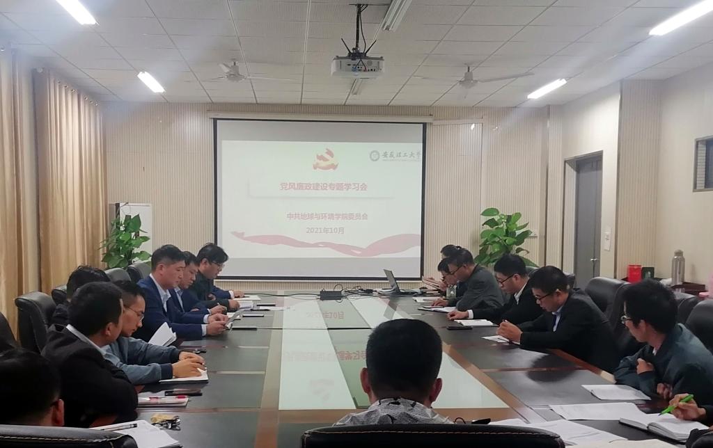 10月15日下午,地球与环境学院召开党委理论学习中心组(扩大)学习会议,开展党风廉政建设专题学习。院党委副书记(主持工作)陈楠主持会议,党委理论学习中心组全体成员,各党支部书记、委员,各系负责人参加学习。