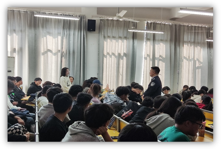 当前,电信诈骗团伙猖獗,诈骗手段不断升级,高校学生被骗案件不断增多。讲座中,苏磊警官向同学们讲解了什么是传销、什么是电信诈骗,详细阐述了传销和电信诈骗案件的特征、形式与防范措施,以及校园电信诈骗的多种形式,如冒充熟人诈骗、刷单诈骗等等,同时针对性地提出了多种防范措施,重点介绍了现阶段常见的校园诈骗手段和新型诈骗方式,列举了校园诈骗的具体案例,提醒同学们切莫贪图小利以免造成不必要的损失。苏磊警官与同学们亲切互动,解答了同学们提出的疑惑和问题。