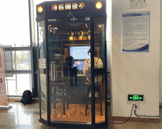 为给广大读者提供一个崭新的阅读平台,让读者用朗读感受文字的力量,体会声音的魅力,从而达到阅读推广的目的。近期,图书馆引进两台数字化阅读设备“朗读亭”并投入使用。