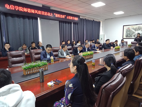 为持续推进师德师风建设,推动课程思政教学创新,营造良好的师风教风,电气与信息工程学院于10月29日下午在励行楼B407学术报告厅举行师德师风建设活动之“课程思政”示范教学观摩活动,学院领导班子成员以及广大教师70余人参加示范教学观摩活动。活动由学院副院长曹珍贯主持。