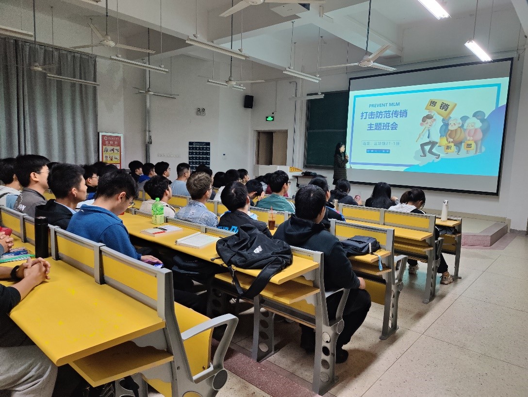 10月29日,各年级辅导员认真组织学生开展“拒绝传销,从我做起”主题班会,讲解传销的违法犯罪性质、欺诈本质和严重危害;利用案例宣讲、图片展示等多种方式,教育学生提高识别传销的能力和自身防范意识,避免风险;组织观看有关视频,通过受骗人员的真实案例,进一步了解传销的严重危害。
