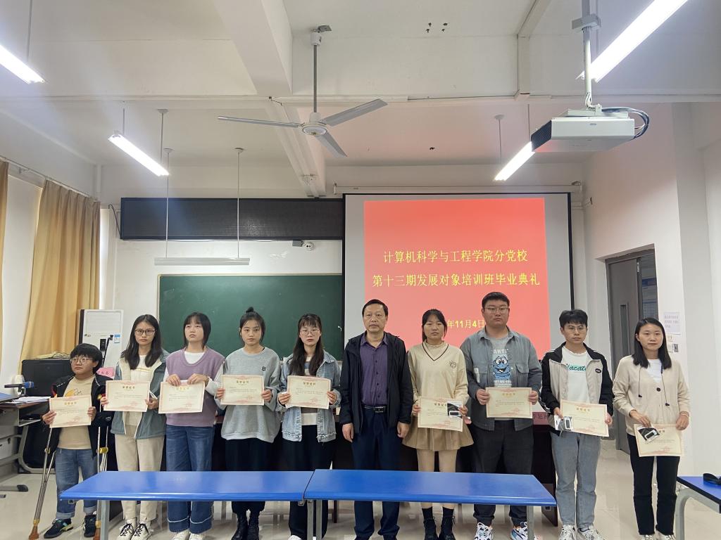 11月4日下午,计算机学院在求本楼B401报告厅举行第十三期发展对象培训班毕业典礼。学院党委书记王永祥、党委副书记刘中廷、培训班班主任、辅导员、培训学员参加了毕业典礼。