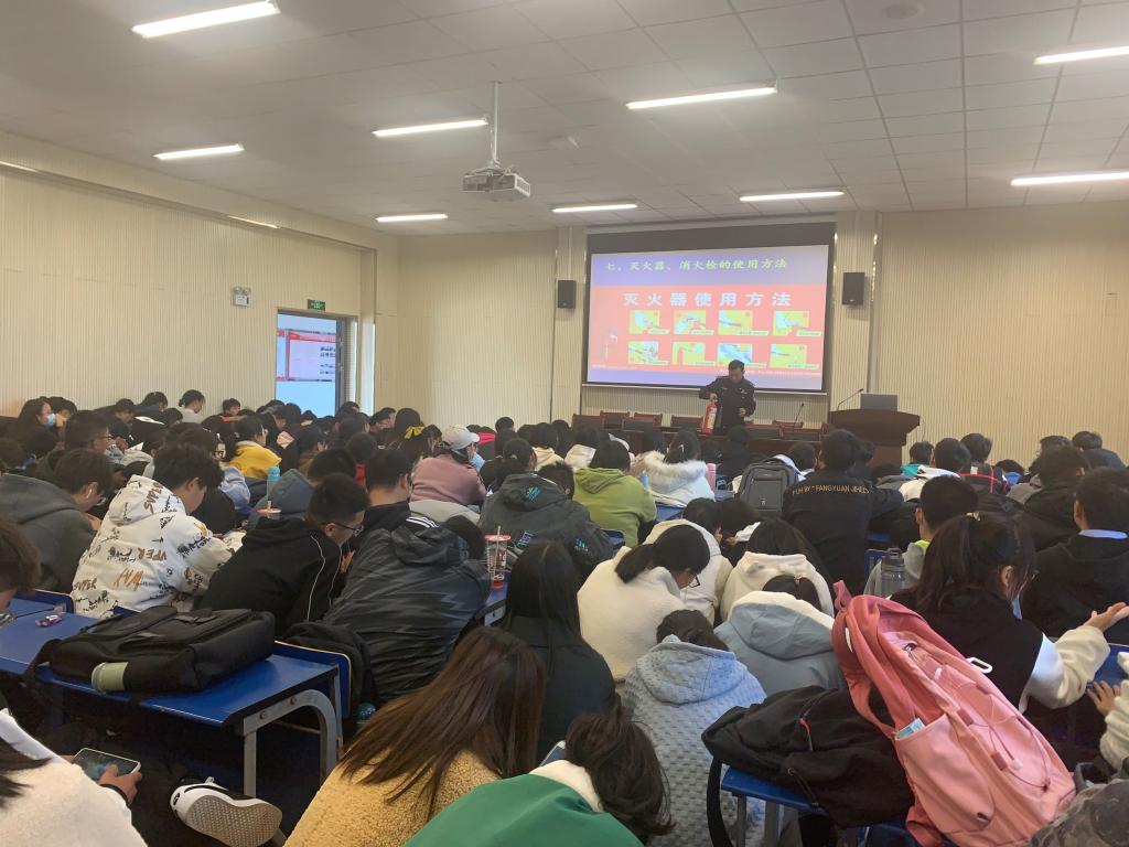 中午,在学院楼一楼报告厅组织开展了消防知识培训,邀请消防科彭广峰担任主讲。彭广峰结合近年来发生的典型火灾案例,就学生宿舍火灾发生的原因、类型、预防措施、灭火器材的使用方法以及发生火灾后如何进行自救等作了十分详尽的讲述,同学们获益匪浅。
