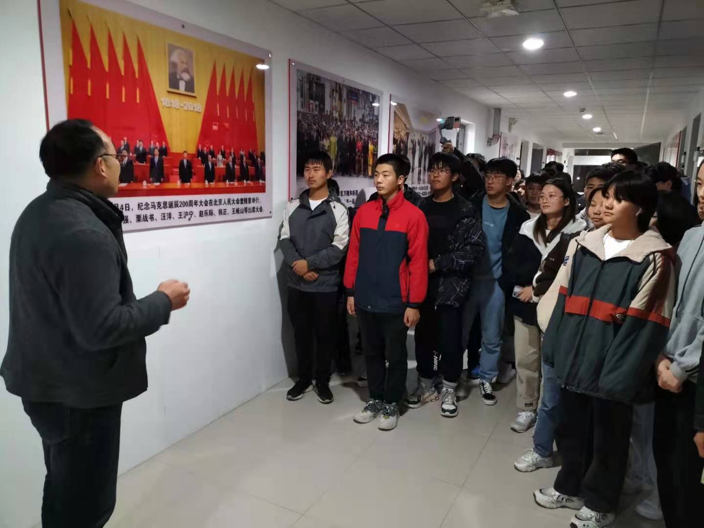 展示活动结束后,同学们在马克思主义学院副院长(主持工作)朱广亮教授的引领下,参观了学院文化墙,从历史的长时段、宽视野了解社会主义500年的发展历程,深刻认识到中国共产党的百年奋斗深刻影响了世界历史进程,创造了人类文明新形态,拓展了发展中国家走向现代化的途径。