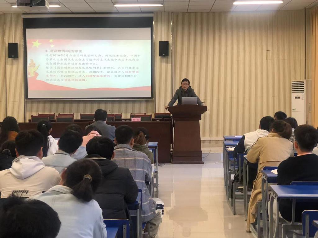 代亮老师以《新时代党的科技创新思想》为题,从时代背景、基本内容及实践路径这三个方面阐述了新时代党的科技创新思想,重点阐明了习近平新时代科技创新思想的核心要义。讲座内容思路清晰、条理清楚,从“科技创新是引领发展的第一动力、坚定不移走中国特色的自主创新道路”,到“人才是创新的根基、建设世界科技强国”,娓娓道来,引人入胜,使学院师生党员对党的科技创新思想有了更加深入的认识,坚定了教师党员用党的创新理论铸魂育人的信心,坚定了学生党员自觉传承党的宝贵精神财富、不断学习科学知识的决心。