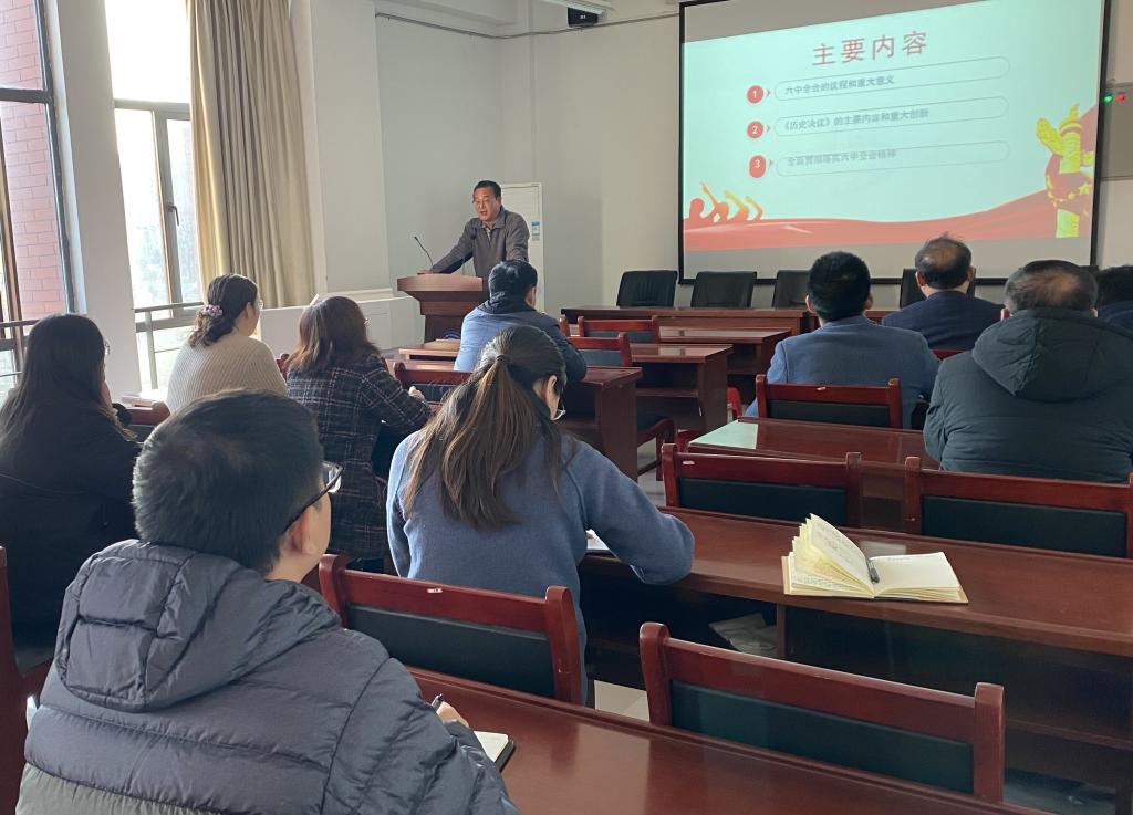 为认真学习贯彻党的十九届六中全会精神,11月22日下午,力物学院在明道楼A323报告厅召开党委理论学习中心组(扩大)会议,学院党委副书记孙东升作专题辅导报告,学院领导班子成员、各支部书记、委员参加了会议。