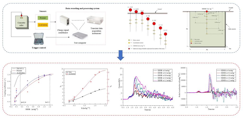 由学院博士研究生周辉作为通信作者完成的题为《Prediction method for ground shock parameters of explosion in concrete》论文发表在《Construction and Building Materials》上。该论文给出了混凝土中达到封闭爆时的临界比例埋深,揭示了混凝土强度对爆炸地冲击传播衰减规律的影响,提出了不同比例埋深爆炸和不同爆炸当量下地冲击参数的计算预测方法。该研究成果可为地下防护工程的设计和安全性评价提供基础数据指导。该研究得到了“国家自然科学基金项目、安徽省自然科学基金项目和安徽省高校自然科学研究项目”的支持。