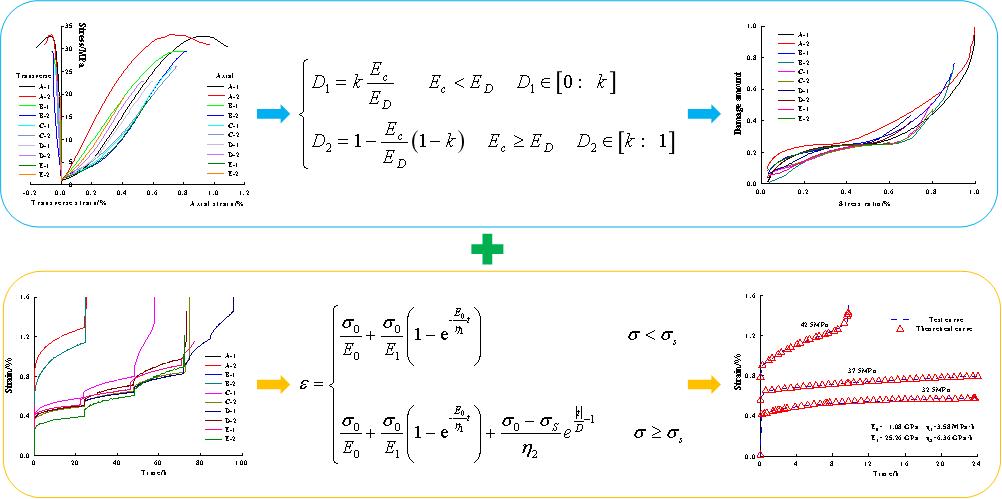 由学院杨科教授及博士研究生吕鑫共同完成的题为《Characteristics of early-damaged cement stone and the creep behavior after damage》论文发表在《Construction and Building Materials》上。该论文研究了巷道混凝土喷层损伤后的蠕变行为,建立了早期水泥石试件损伤量求解方程,修正了损伤蠕变模型,确定了早期水泥石损伤阈值,分析了损伤量对蠕变破坏强度、瞬时应变及蠕变应变的影响,探讨了损伤水泥石的蠕变失稳模式,填补了早期混凝土损伤蠕变研究的空白,该研究得到了国家重点研发计划、合肥综合性国家科学中心能源研究院、安徽理工大学研究生创新基金项目的支持。