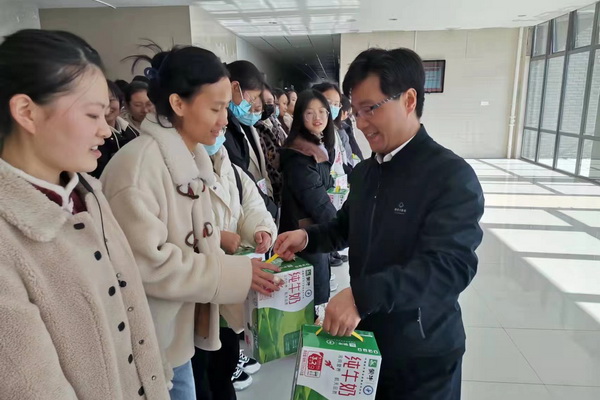胡东与同学们分享了备考经验、高分技巧和心态调整方法,鼓励同学们咬紧牙关不要放弃。他还提醒同学们复习备考的同时要注意适当锻炼,加强营养,劳逸结合,保持身心健康。活动最后,胡东为考研学子赠送牛奶等生活物品,送上学院的关心,让学生感受学校的关心和温暖。