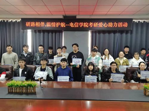 为鼓励考研同学积极迎考、增强信心,11月26日下午,电气与信息工程学院在励行楼B407报告厅为考研学子献爱心、送祝福,助力考研学子青春圆梦。学院党委副书记唐克、副院长曹珍贯及毕业班辅导员同考研学生代表亲切座谈,传授备考经验,舒缓备考压力,并现场发放考研爱心加油包,为考研学子送去温暖和祝福。