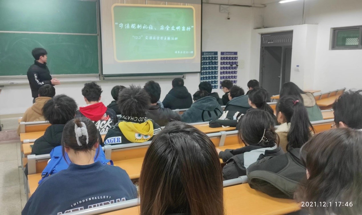 12月2日是交通安全日,各年级团支部积极开展交通安全主题班会,针对校园交通法、学生走路低头看手机、自行车逆行行驶等方面对学生进行交通安全知识普及讲解。大家表示,我们既是文明交通的践行者,也是文明交通的受益者,要遵守交通法规,共同维护安全的校园环境,做文明交通人。