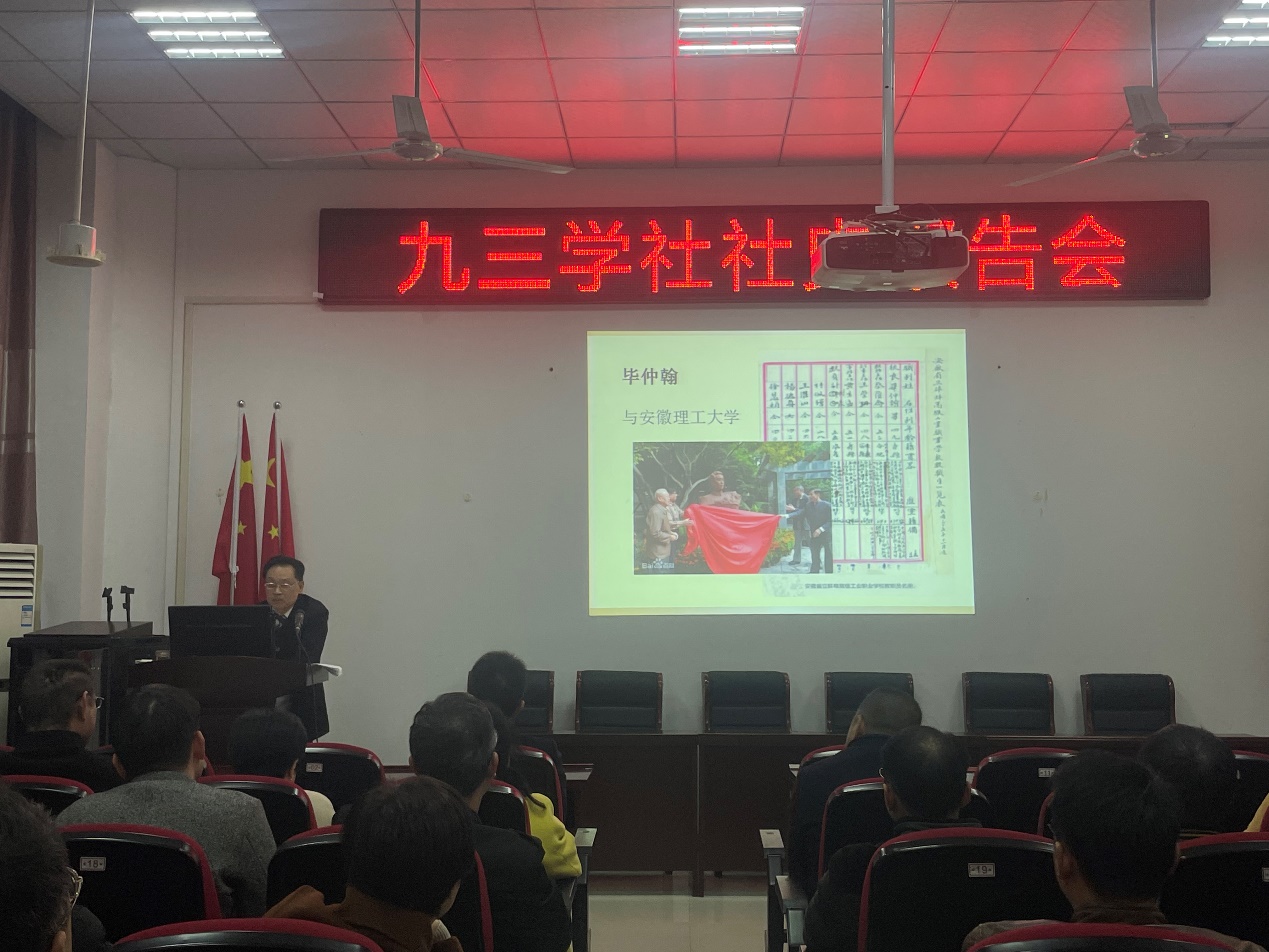 12月4日下午,九三学社社史报告会在学校崇义楼B118会议室顺利举行。报告会由九三学社淮南市委原副主委梁星主讲,现任市委主委王成军、副主委朱绍泽、田家庵基层委所属各支委会社员代表参加了报告会。