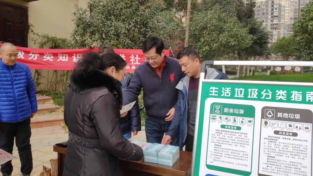 在安理家园英伦联邦小区,餐饮中心、公寓与商贸中心、物业中心党支部的党员,通过分发环保垃圾袋、垃圾分类知识宣传等方式,向居民科普生活垃圾分类的相关知识,使居民了解了生活垃圾分类是节约资源和生态环境保护的重要部分,积极参与垃圾分类工作,为美好小区环境、城市环境建设献出一份力。