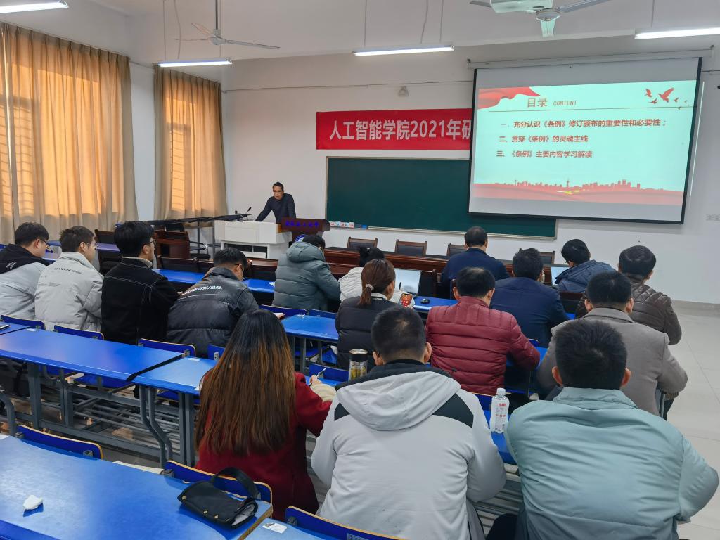12月9日下午,人工智能学院在崇智楼A125报告厅举办学习解读《中国共产党普通高等学校基层组织工作条例》专题讲座,邀请学校机关党委书记、组织部副部长涂有胜作专题辅导报告。学院全体师生党员参加学习活动。学院党委书记张旸主持会议。