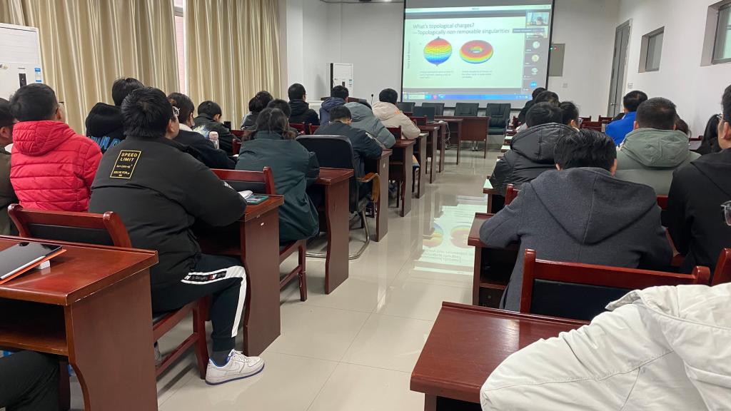 应科研部、国际交流与合作处和力学与光电物理学院邀请,12月15日,香港科技大学杨镖副教授作了题为《Non-Abelian topological charges(非阿贝尔拓扑荷)》的在线学术报告,报告会在学院报告厅同步举行,由副院长高娟主持。全体研究生与部分青年教师共计80余人参加了报告会。