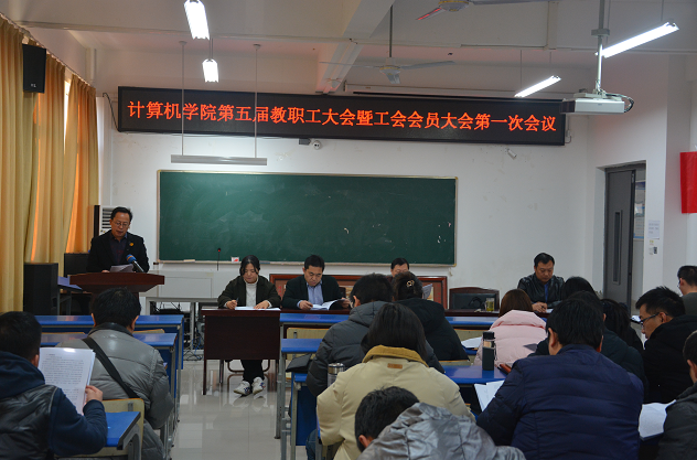 12月17日,计算机学院五届一次教职工大会暨工会会员大会在求本楼B401召开。学院全体教职工参加会议,会议由学院党委书记王永祥主持。