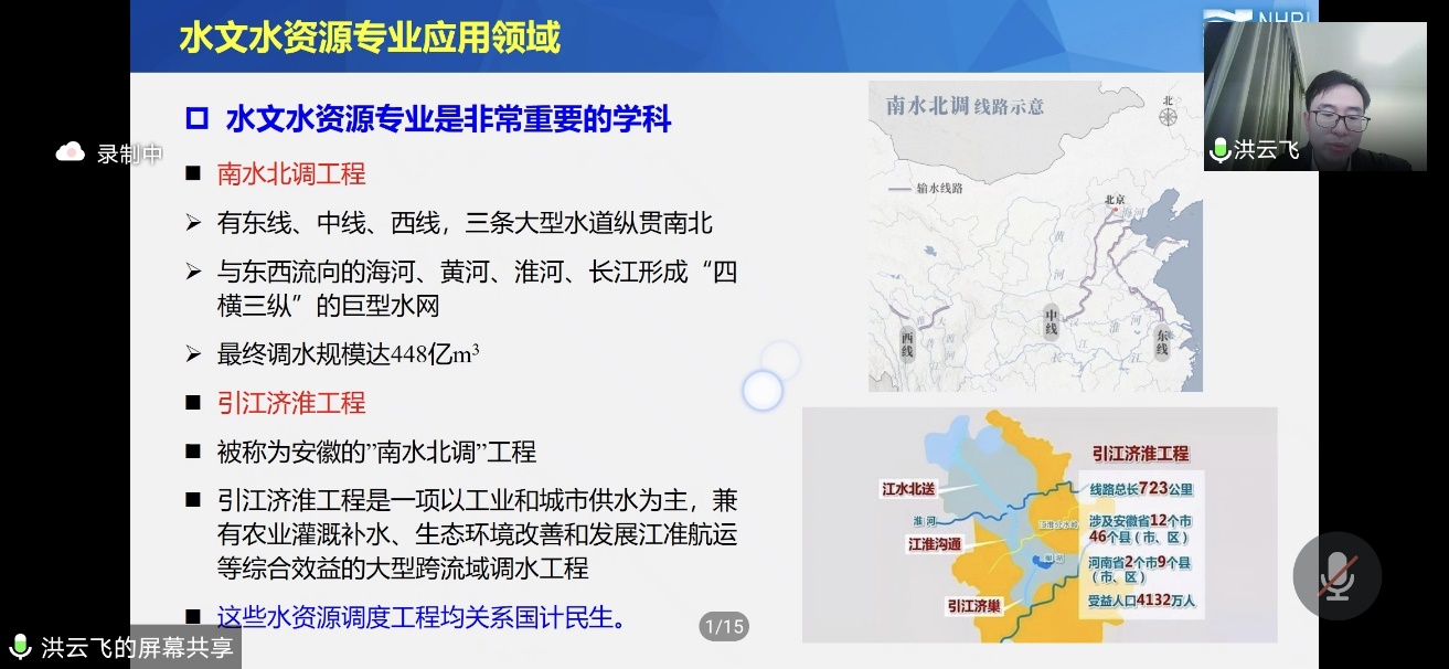 12月21日,地球与环境学院邀请水文与水资源工程专业首届校友、南京水利科学研究院工程师洪云飞为学院2021级、2020级、2019级水文与水资源工程专业学生作了题为“打好基础、学好本领、做好规划,争做一名优秀的水利人”的励志报告会。报告会由学院党委副书记贾伟主持,地球与环境学院水科学与工程系教师、本科生共计200余人通过腾讯会议在线听取了报告会。