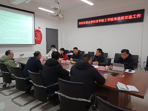 12月29日下午,合肥经济学院工学院院长张敬修等一行5人到电气与信息工程学院调研学习交流。学院党委副书记、院长周孟然,副院长曹珍贯及相关各系主任在励行楼B415会议室与来访客人交流座谈。交流会由曹珍贯主持。