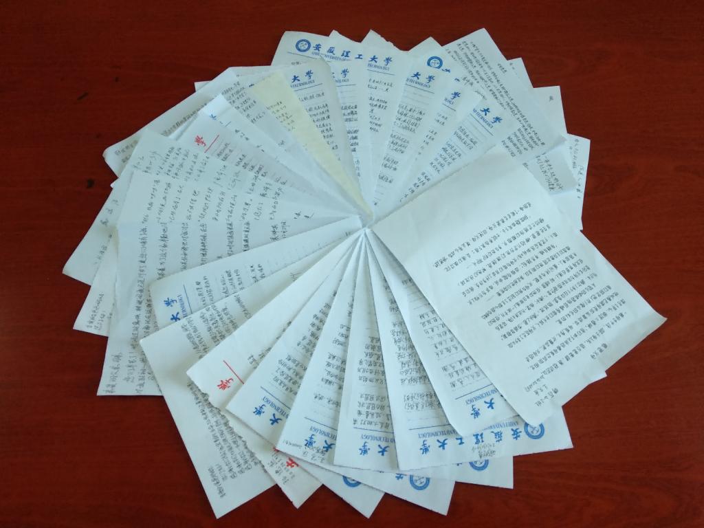 纸短情长道感恩。12月21日,化工学院开展“我想对您说”书信征集活动,共收到书信300余份,其中包括我想对老师说,我想对父母说,我想对朋友说等不同主题。一行行情真意切的文字,恰恰是一幅幅感人至深的生活剪影。“写了一封信才发现父母是真的很辛苦,在以后的日子里,我会更加努力学习,用实际行动报答父母的养育之恩。”弹药20-3班苏雨行如是说。