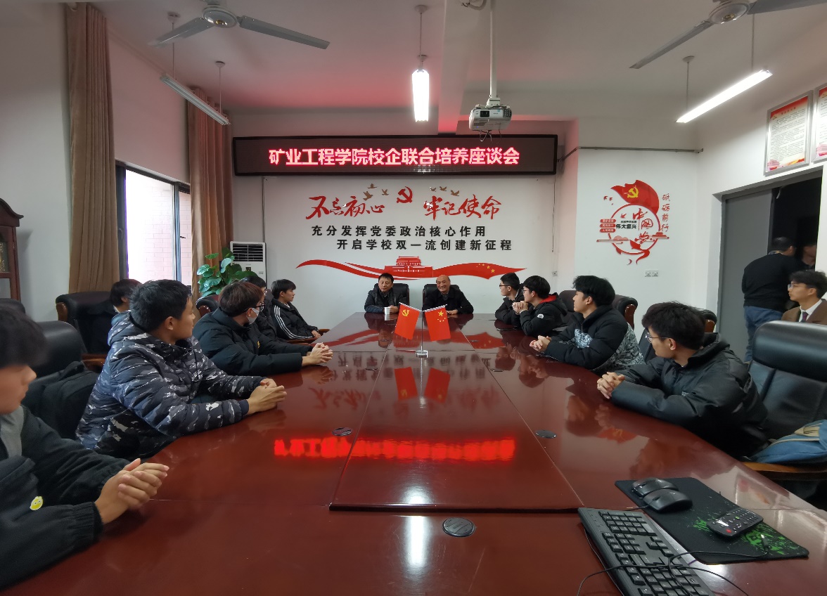 12月29日下午,矿业工程学院在宁远楼A406举办校企联合培养座谈会。采矿88届校友、昆山墙地美商贸有限责任公司董事长郑迪、学院党委书记盛鹏飞、“墙地美”助学金获得者和优秀学生代表参加座谈会。