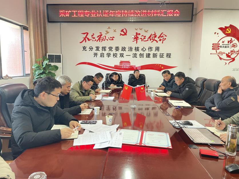 12月28日上午,矿业工程学院在宁远楼A406会议室,召开采矿工程专业认证年度持续改进材料汇报会。学院党委书记盛鹏飞和教学工作委员会成员参加了会议。会议由副院长张向阳主持。