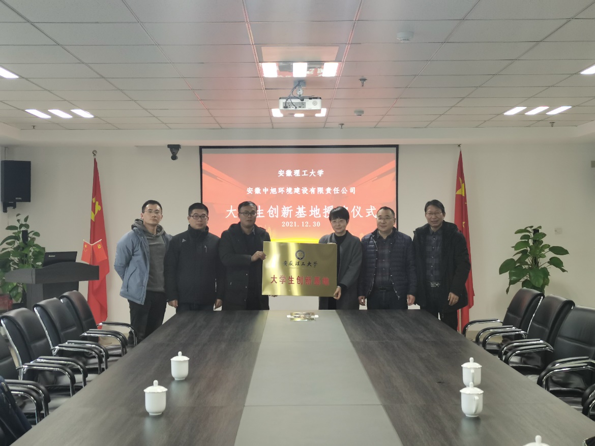 座谈会后,地球与环境学院与安徽中旭环境建设有限责任公司举行了大学生创新基地的授牌仪式。环境与地质学科的部分教师参与了交流座谈。