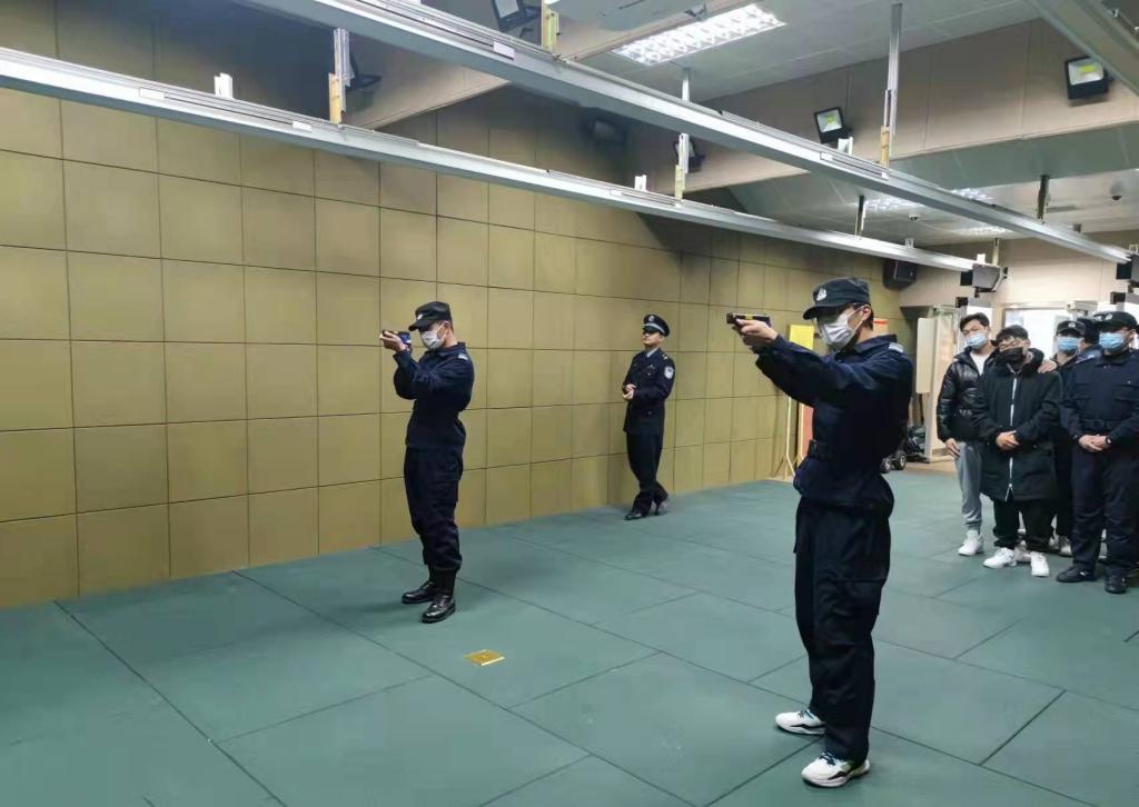 在护校队员们最感兴趣的参观枪支和模拟射击环节中,警官向大家详细介绍了各类警用枪支的构造和分解射击要领,演示了完整的射击过程。在靶场体验环节中护校队员2人为一组,依次上场,拿起枪只,瞄准靶心,保持平稳,果断击发。尽管护校队员们是初次实地射击,按照警官的指导和个人的沉稳发挥,都打出了较为“优秀”的成绩。模拟射击结束后,同学们纷纷表示第一次摸枪的感触很深,大呼过瘾。