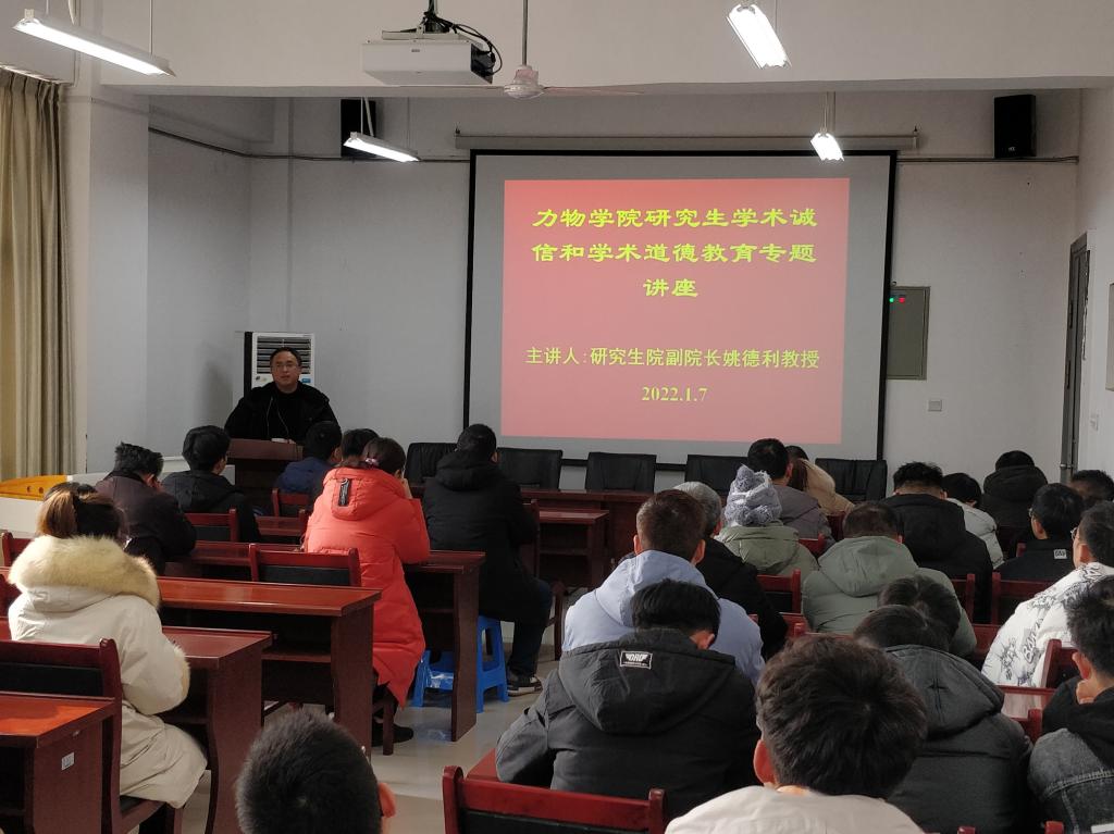 为提高研究生培养质量,进一步加强师生学术诚信和学术道德教育,1月8日下午,力物学院邀请研究生院副院长姚德利教授来院作学术诚信和学术道德教育专题报告。报告会由学院党委书记刘艳主持,全体研究生和研究生导师参加。