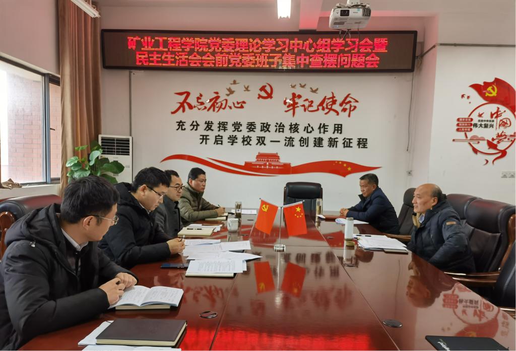 1月7日上午,矿业工程学院党委理论学习中心组在宁远楼A406会议室召开党史学习教育专题民主生活会学习研讨暨党委班子集中查摆问题会,围绕党史学习教育总结大会精神进行专题学习研讨,并结合民主生活会会前征求意见情况集中查摆问题。学院班子成员参加会议。