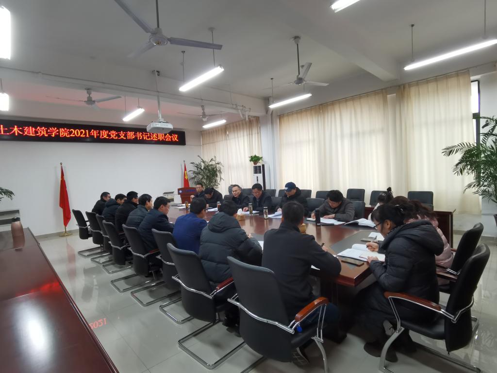1月14日上午,土木建筑学院党委在求是楼231会议室召开党委扩大会议,开展2021年度支部书记抓党建述职评议工作,对15个党支部进行考核。学院党委委员、全体党支部书记参加会议。会议由学院党委副书记、院长庞建勇主持。