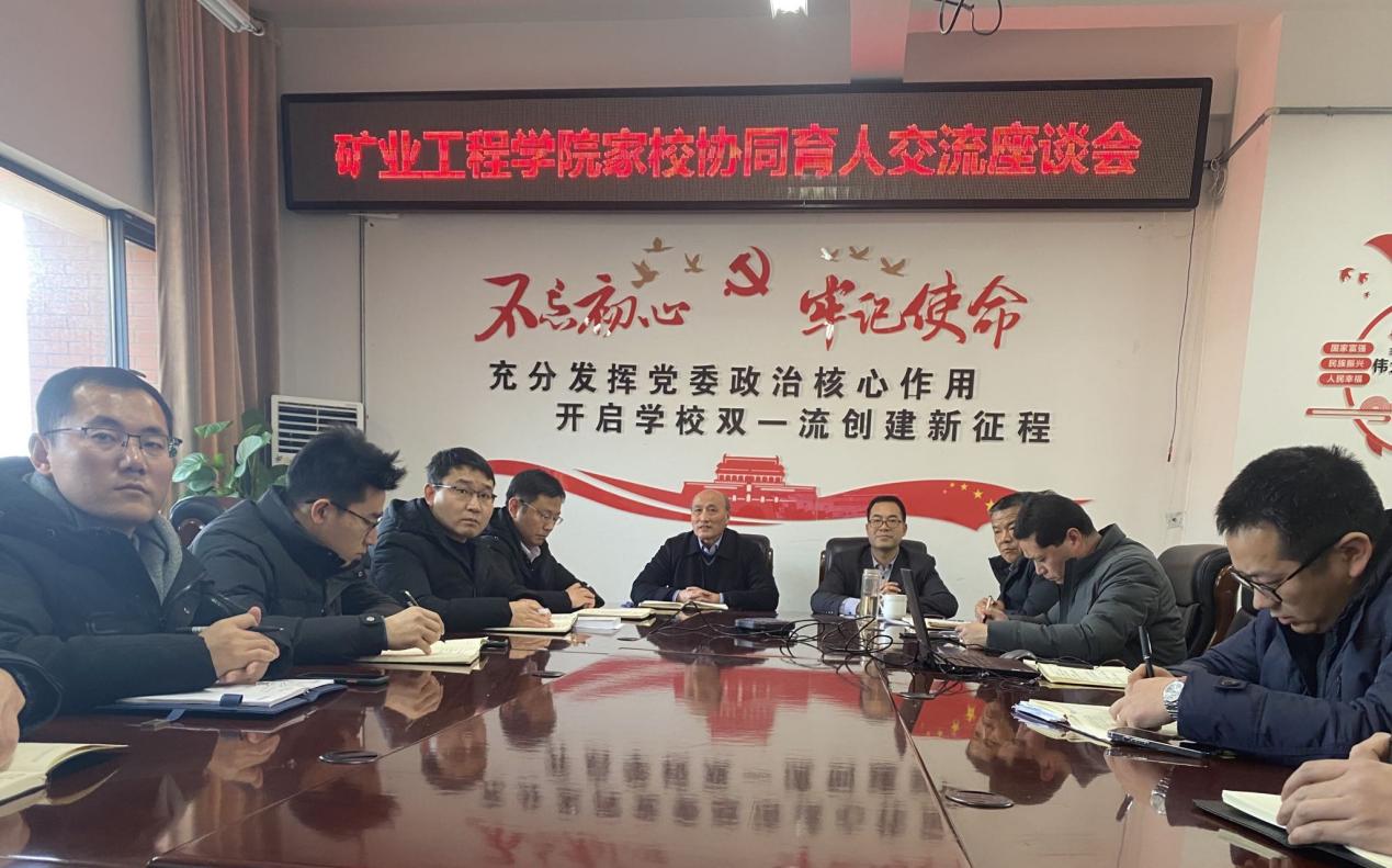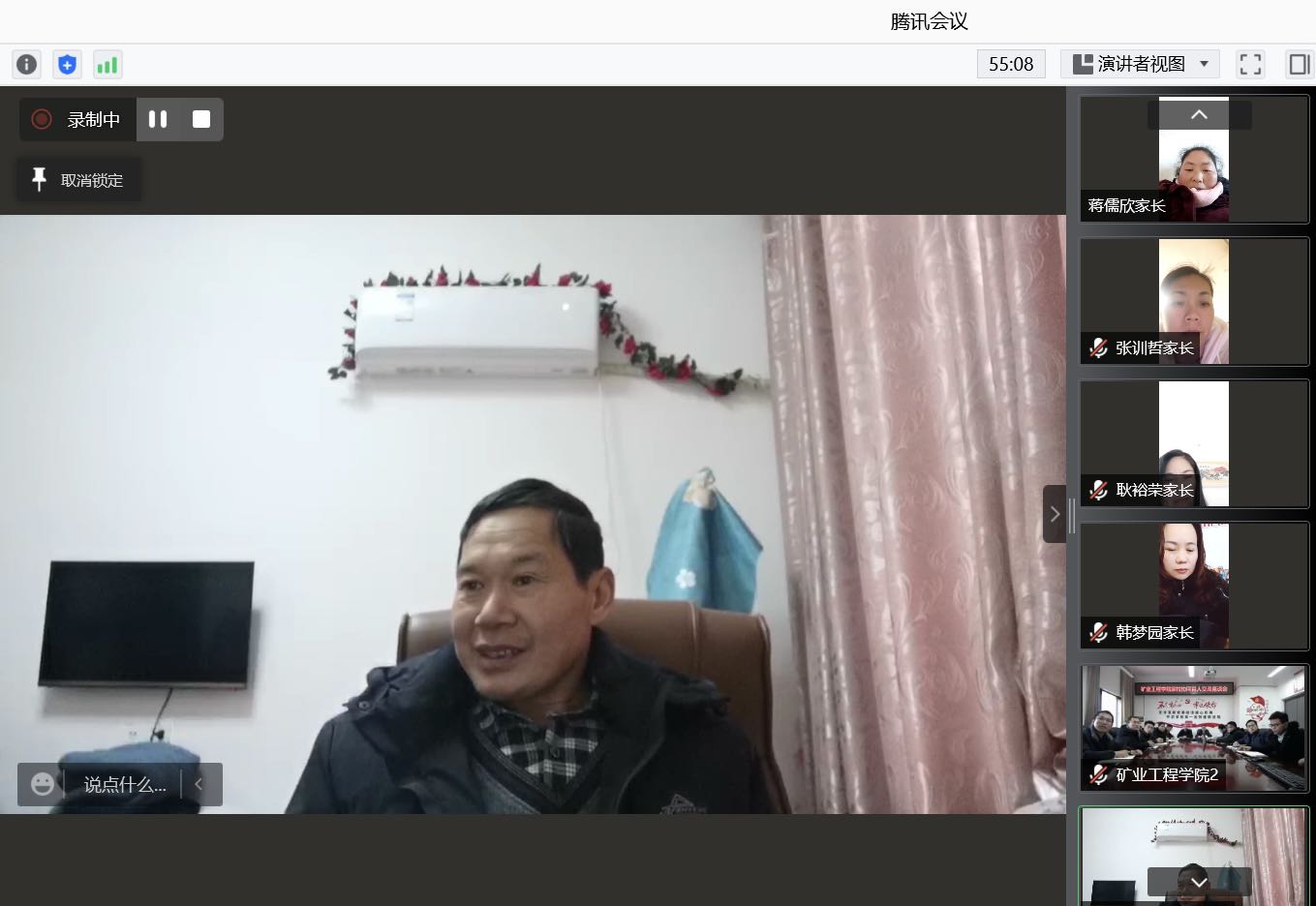 为进一步密切家校联系,做好精准资助与“三全育人”工作,构建学校与家庭、教师与家长交流联系的有效平台,营造学校与家庭协同育人的良好氛围,矿业工程学院于1月13日在宁远楼A406开展家校协同育人交流座谈会。学院领导班子成员、系负责人、教师代表、班主任代表、全体辅导员、学生资助宣传大使和部分学生家长300余人采取线上线下相结合的方式参加了座谈会。学院党委副书记田秋实主持会议。