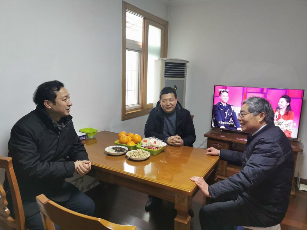 1月27日上午,总务部党委书记侯辉、部长张亚一行深入学校家属区走访慰问部分离退休党员、职工,向他们送上组织的关怀和新春的祝福。