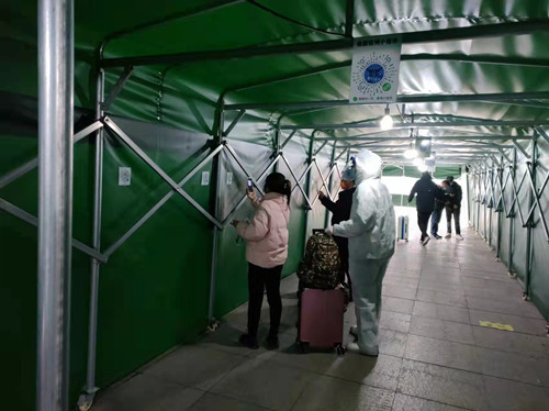 “请大家有序排队,自觉扫描并出示安康码……”在滁州高铁站进站口的测温通道里,来自2020级通信1班志愿者宋新宇一边提醒旅客,一边仔细检查安康码,偶尔遇到没有手机的旅客,他就引导旅客做好身份信息登记。