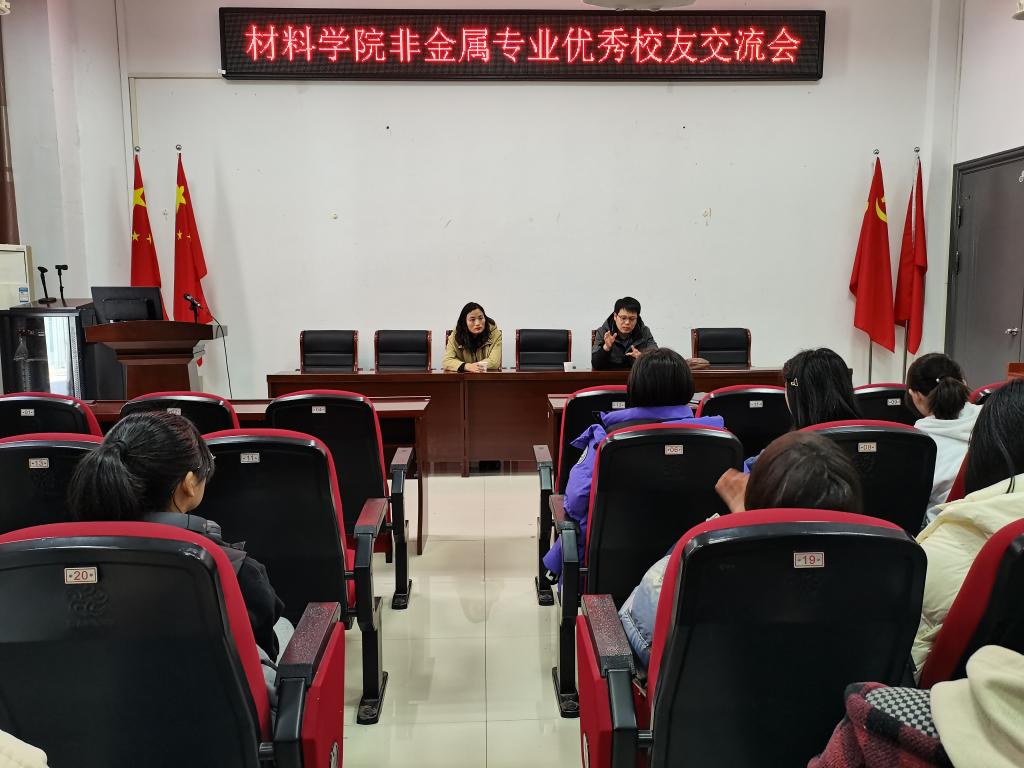 为进一步加深大一学生对专业的认识,树立正确的学习目标,2月26日上午,材料学院在崇义楼B118报告厅举办优秀校友经验交流会。无机非金属材料工程专业2008届优秀校友、合肥国轩高科动力能源有限公司副总裁饶媛媛和煤炭工业合肥设计研究院高级工程师郜超应邀回母校作交流报告。无机非金属材料工程专业2021级全体同学参加了交流会。
