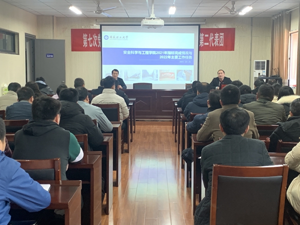 2月25日下午,安全科学与工程学院在宁远楼A410报告厅召开新学期全院教职工大会,传达学校2022年两代会精神,部署新学期学院重点工作。学院党委书记金德主持大会。