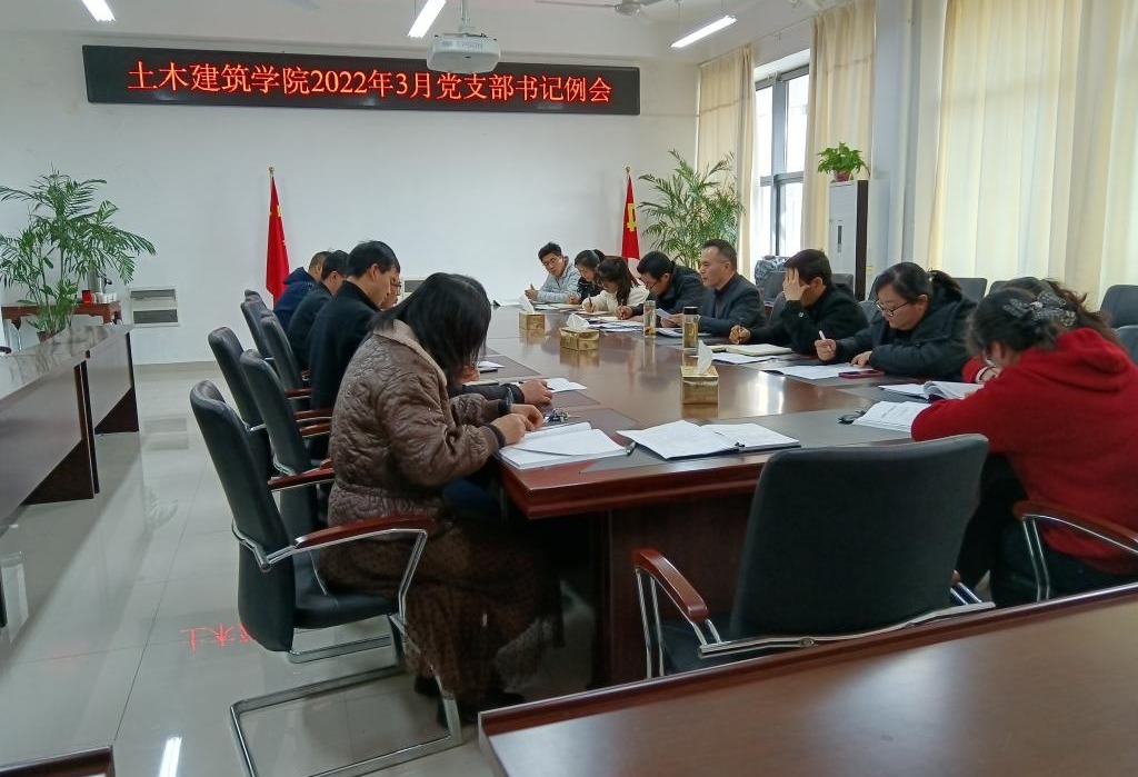 3月3日下午,土木建筑学院党委在求是楼南231会议室召开党建工作专题会议,会议由院党委书记冯定昌主持,院党委副书记张向林、全体党支部书记参加会议。