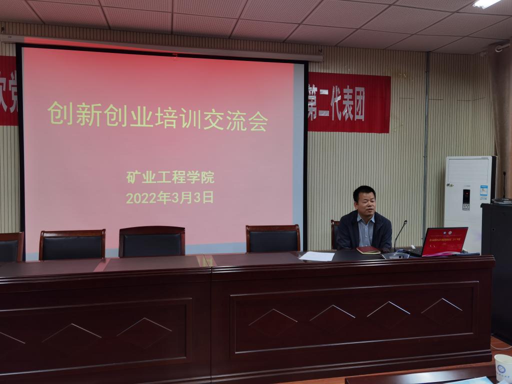 3月3日,矿业工程学院邀请龙岩沃利达生物科技有限公司董事长李永信校友在宁远楼A410开展创新创业培训,学院院长杨科主持会议。