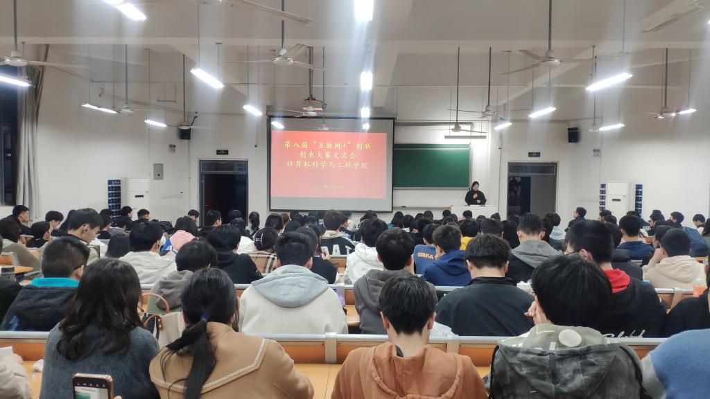 为进一步提高大学生创新创业能力,让“互联网+”大学生创新创业大赛参赛同学获得更好的经验指导,3月7日晚,计算机学院邀请教务处王青华、机械学院阮学云教授和计算机学院苏树智老师在天工101作交流辅导,学院副院长周华平、学科竞赛负责人以及200余名学生参加交流会。会议由周华平主持。