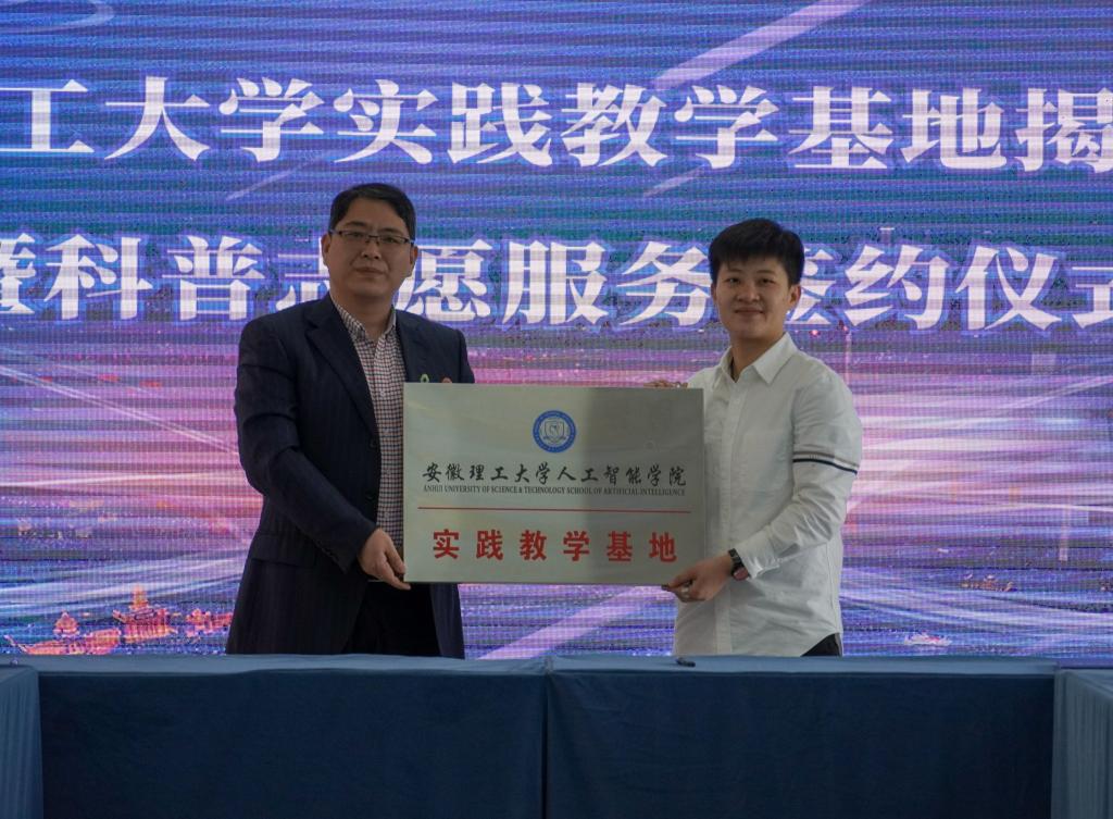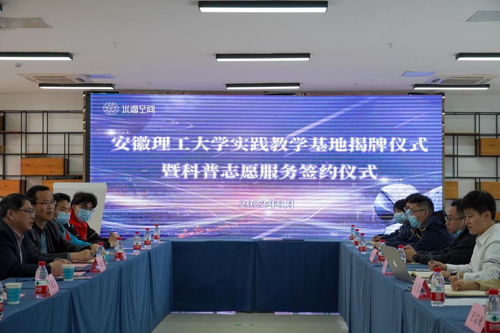 双方共同举行了“安徽理工大学实践教学基地”揭牌仪式,并签署了科普志愿服务协议。