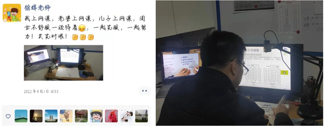 师生感情在众志成城中更见深度,防疫不隔爱,在线上教学课堂两端都有着一颗热爱生活的心!“风里雨里,我在这里等你”,即使有困难也阻挡不了老师的上课热情。