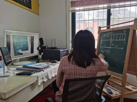 小黑板发挥大作用。赵丽霞老师巧妙地把家里孩子的小黑板搬进了“线上课堂”,于是,传统教具黑板,摇身一变,成了网课时代的“黑科技”,线上教学获众多学子点赞。